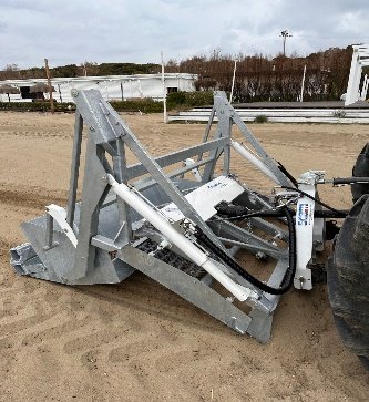 Tractor-towed beach cleaning machine, perfect to be used with 4-wheel drive tractors (50cv). Ideal for cleaning of sandy areas (beaches, golf courses bunkers, playgrounds, beach volley fields, etc.)